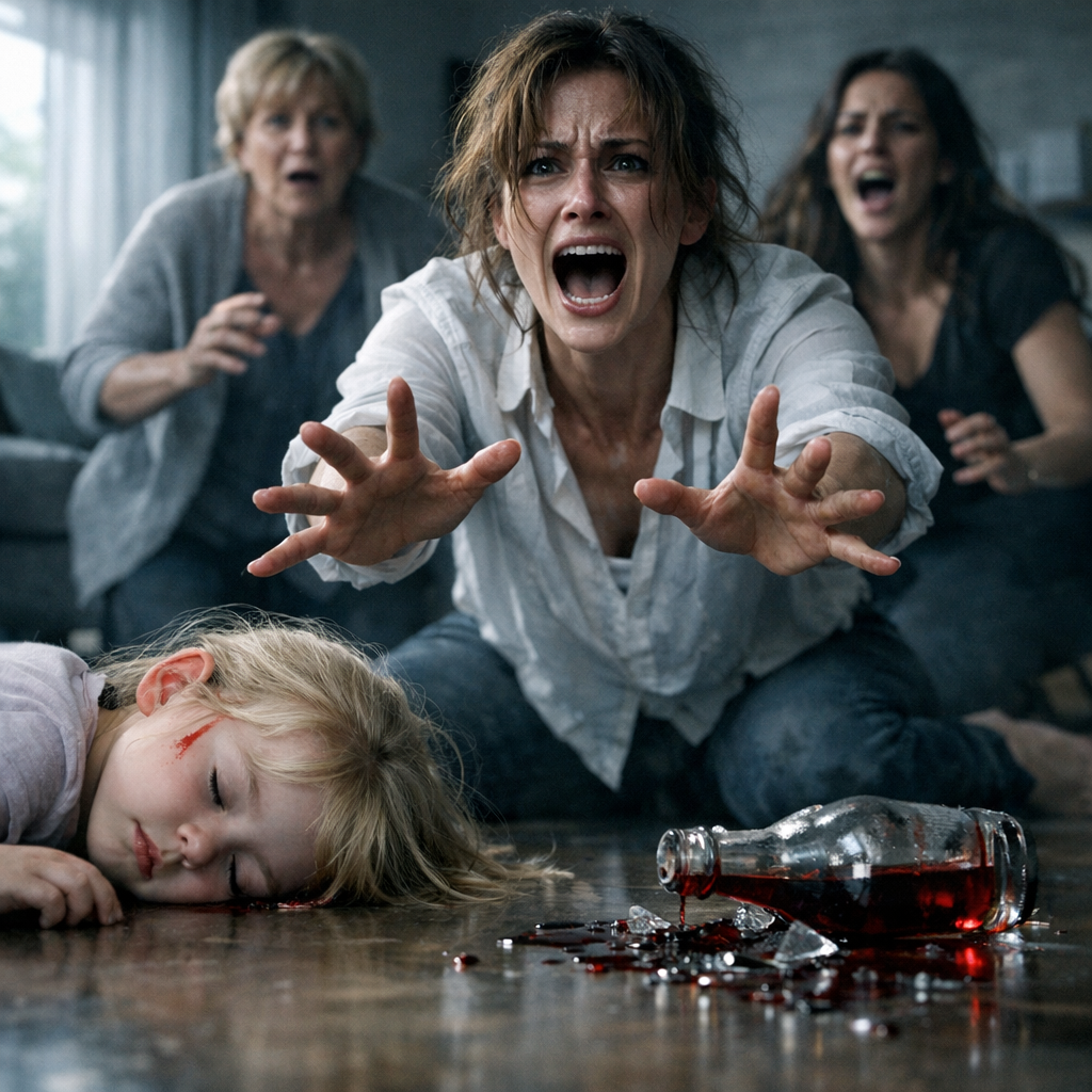 The scream tore out of my throat, raw and animalistic. I scrambled across the room, knocking over the wine decanter. The expensive Cabernet spilled across the floor like blood, pooling around my daughter’s head.