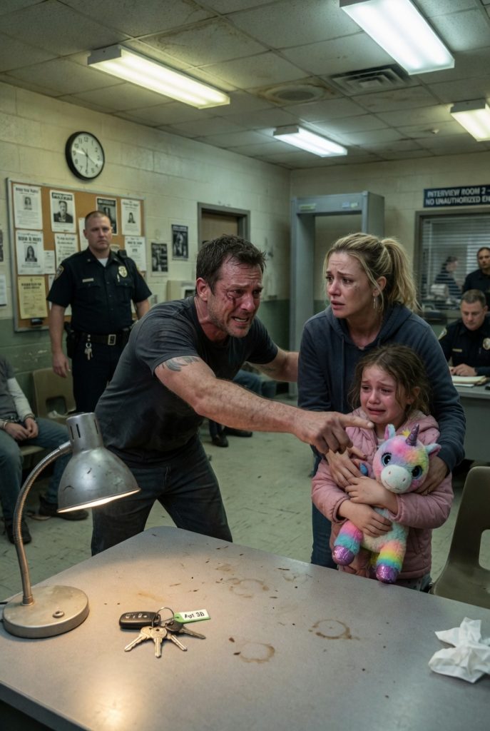 I burst through the station doors and scanned the room, and when I spotted Ellie sitting in a plastic chair clutching her stuffed unicorn, I felt my knees go slightly soft with relief. She was physically okay. She was right there, solid and real, wearing her little pink sneakers and the striped shirt I’d helped her put on that morning. But her eyes had a glassy, faraway look that no five-year-old should carry, the look of someone who had seen something they couldn’t fully process and was still stuck inside it.