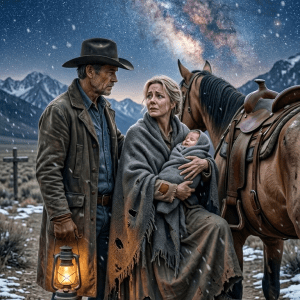 Clayton Mercer heard the crying before he saw the smoke. The January wind cut through his wool coat, sharp and cold, as his horse climbed the last ridge toward Two Creeks Ranch. Snow lay thick across the land, untouched, except for one thing that stopped his breath.