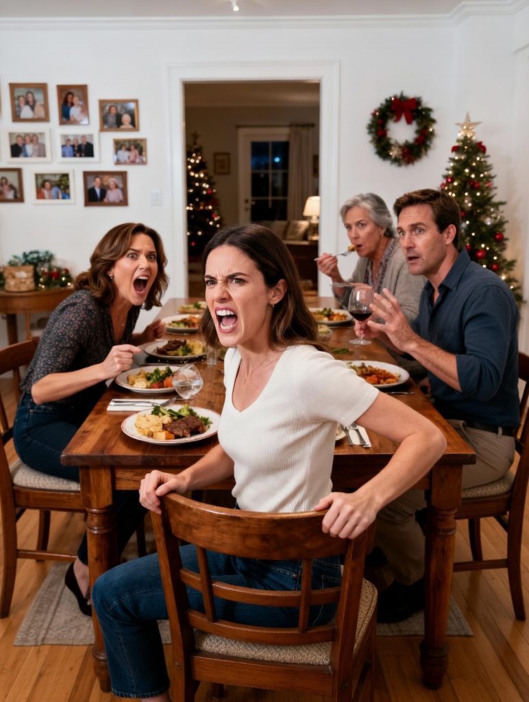 My mother’s fork froze halfway to her mouth. My father frowned, trying to understand if this was a joke he’d missed. No one laughed. No one corrected her. The silence stretched—thick, uncomfortable, exposing.
