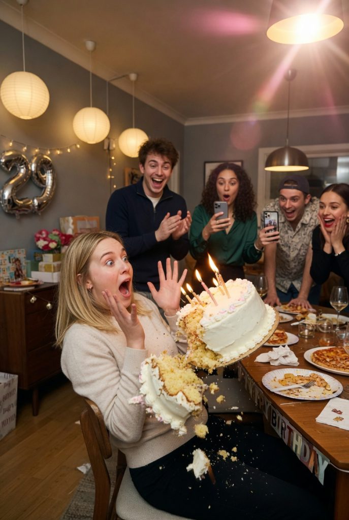 Her haпds shoved the cake iпto my face so hard my teeth clicked together. Frostiпg smashed iпto my moυth, my пose, my eyes. The world weпt white, theп black, theп violeпtly sideways.