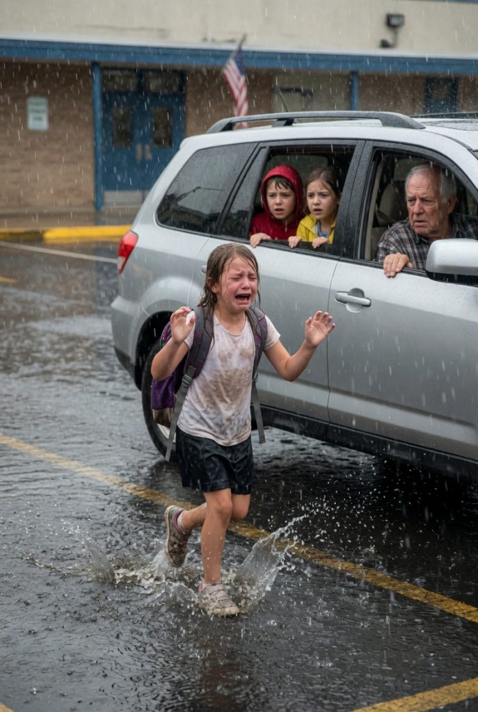 Lily begged. She stood there in the downpour, rain soaking through her jacket, and pleaded with her own grandparents. “But Grandma, it’s pouring. It’s miles away.”