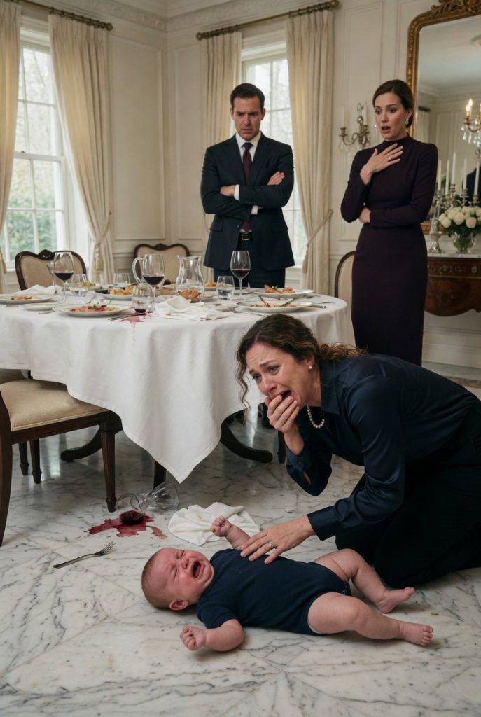 I couldn’t breathe. I couldn’t move. My knees were on the hardwood floor, my baby’s body against my chest, his scream so high and terrified that it didn’t even sound human anymore. The red mark was already spreading across his tiny shoulder where he’d hit the wall. His turkey onesie—the one with the little feathers on the bottom that my mother had mailed from Florida—was covered in cranberry juice.